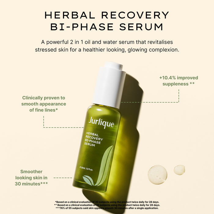 Herbal Recovery Bi-Phase Serum It is soft & silky within minutes it flows into your skin, leaving a lovely moisturising feeling, without being oily.