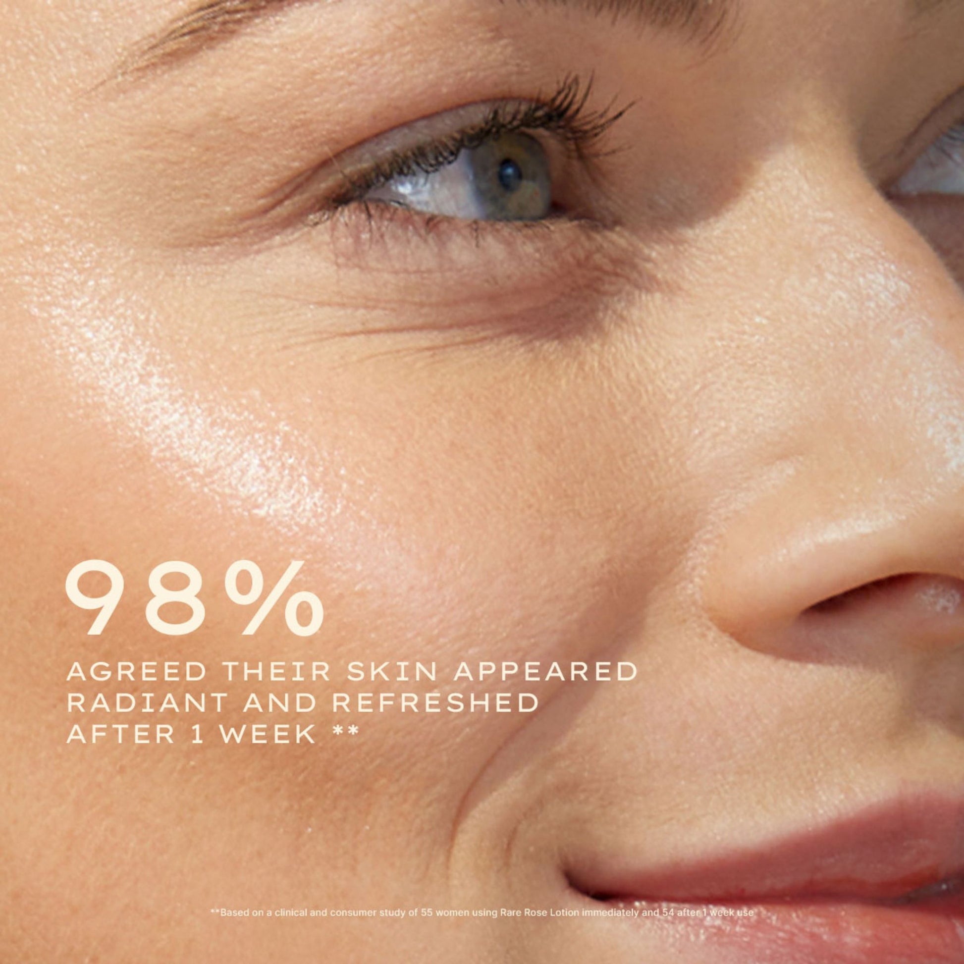 **Based on a clinical and consumer study of 55 women using Rare Rose Lotion immediately and 54 after 1 week use