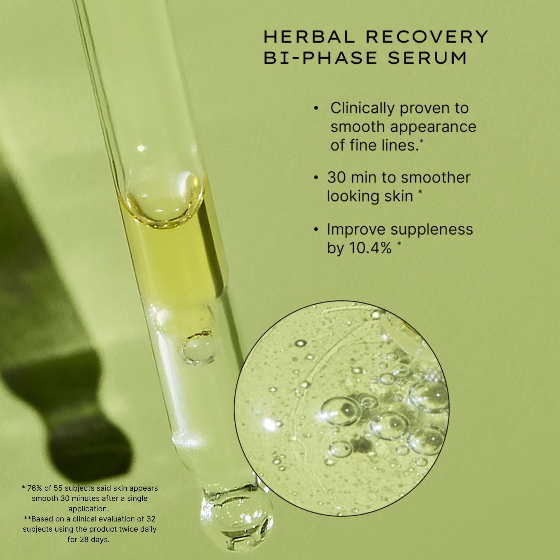 • Herbal Recovery Bi-Phase Serum: Helps improve visible signs of stress and the first signs of skin ageing